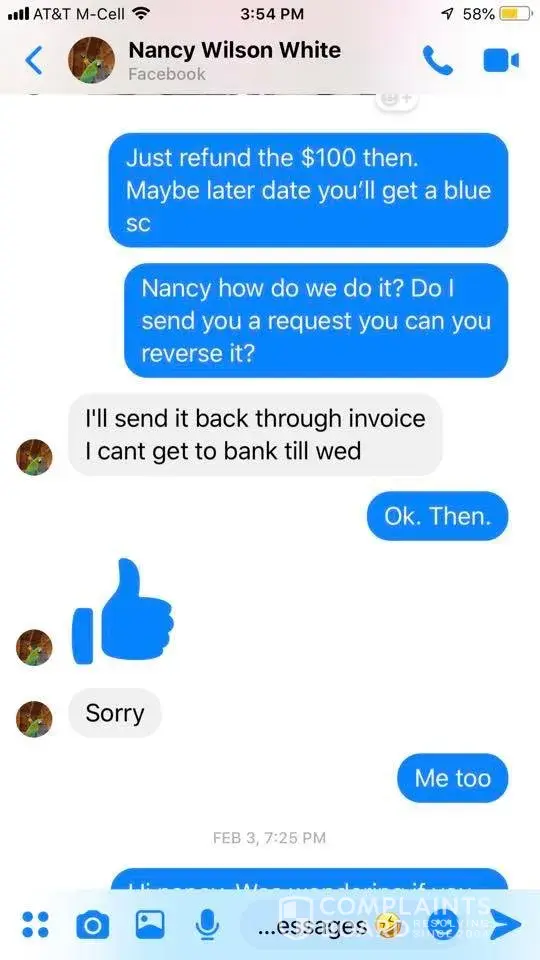 Verified customer This complaint was posted by a verified customer. Learn more