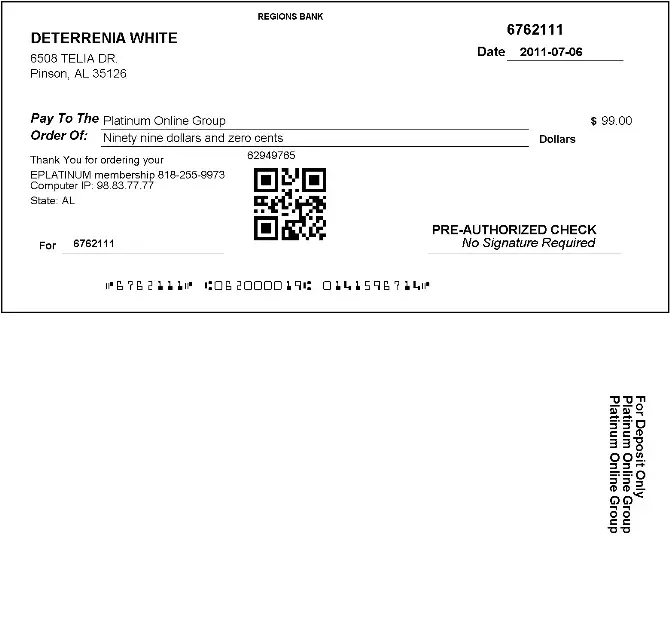 Platinum online group is a scam...i was charged $99 twice and i never authorized them to withdraw from my account! they created 2 checks: chk#22790 for $99.000, and the next day they charged me again! And another fake unauthorized check creation!