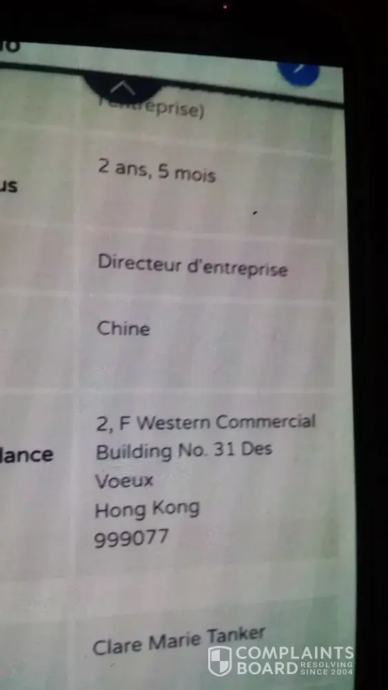 Adresse de WENJUN LOU en photo l'autre adresse ci dessus est à Qin