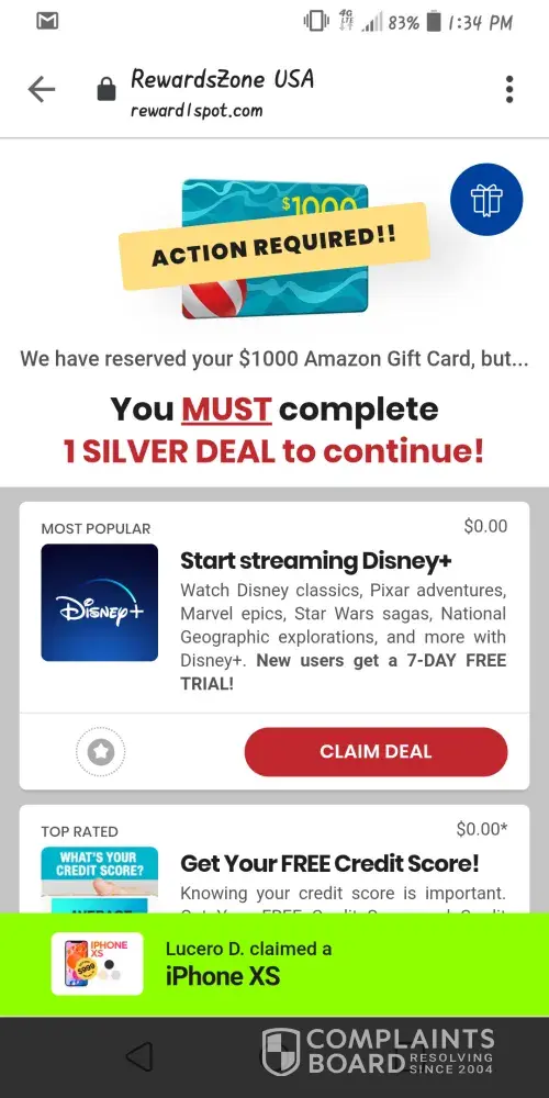 I'm complaining 2 / $1, 000 Amazon gift card that has not been able to go through because it's not allowing me to get to the Platinum cuz it keeps going back and forth the first it says it's $1, 000 gift card and then it now it's dropped down to $100 gift card but then I have to complete more deals with cost money and it never said anything of that in the beginning and I've completed to Silver deals and one gold deal and now it's asking to complete to platinum deals but yet it won't let me get to the Platinum deals and I feel that I've done this and have completed what I needed to complete to get the thousand dollar reward Amazon gift card but yet it's not letting me even get to do that because of the Platinum deals that I haven't yet to complete but it won't allow me to get to that it just keeps going back to the surveys and it only gives you a limited time frame like a month to get this all done in and that's what I'm complaining about