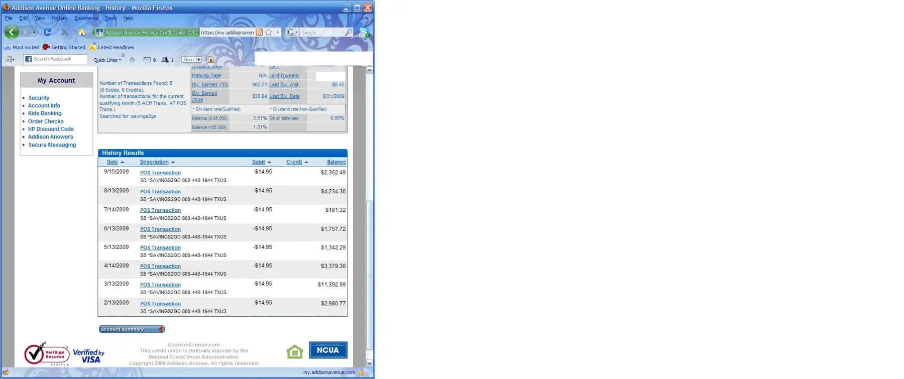 I was checking my bank statement and found a charge for $14.95 to Savings 2Go which i never authorized and I don't know anything about that company nor have I ever gone online to their site. I'm furious because I am on a strict budget and my over draft was charged for insufficient funds and I had to pay for that until I get to the bottom of this fraudulent identity stealing company.