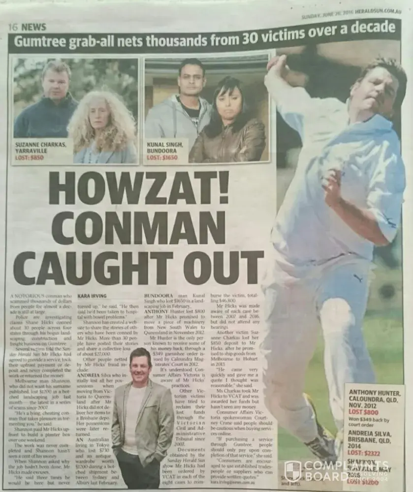 Shane Hicks may have pretended to be from SS Express, Northern Turf and Landscapes or Northern Constructions (Vic) Pty Ltd but every time, Shane Hicks has proven to be a liar, thief and conman. - he has chosen to scam hard working people out of their money. HeraldSun Expose...