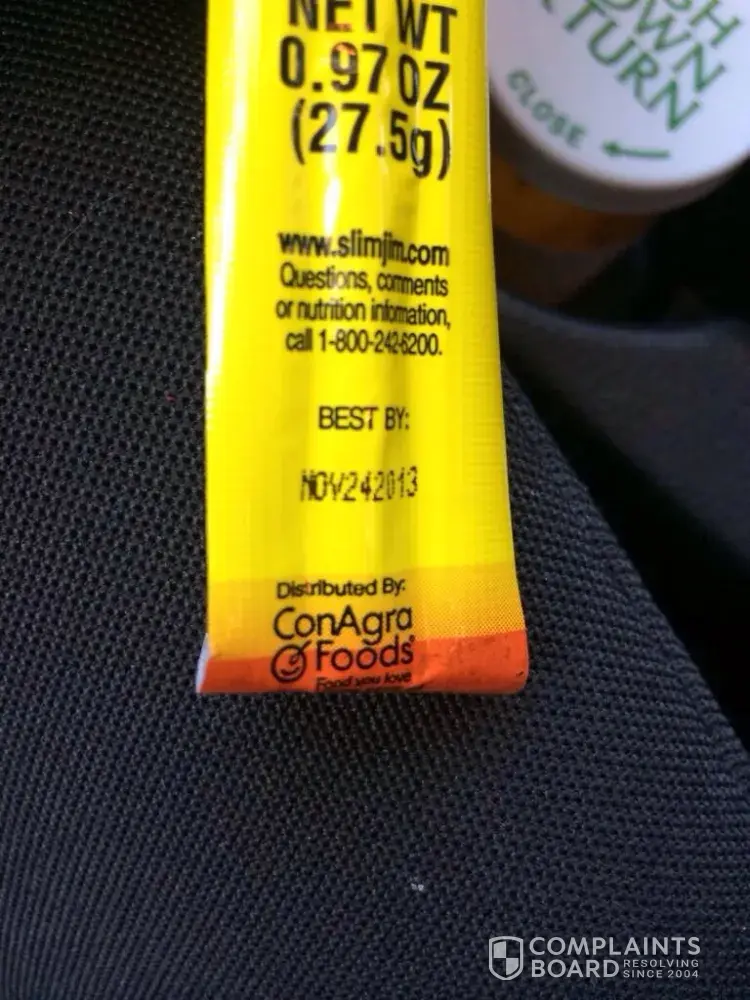 On August 29th, I went to Suda Salvage in Jefferson, Louisiana and I purchased a pack of Slim Jims for 2.99. I ate one and I thought they tasted kind of unusual. I then looked at the expiration date, and I almost had a heart attack. They expired in 2007! I definately want some type of compensation and I have the proof if necessay. I still have the wrapper that had the expiration date on it and I still have the Slin Jims minus one. I brought them back to the store, and they told me that there was nothing they could so about it. I really enjoy SlimJims, and I hope to hear back from you all.