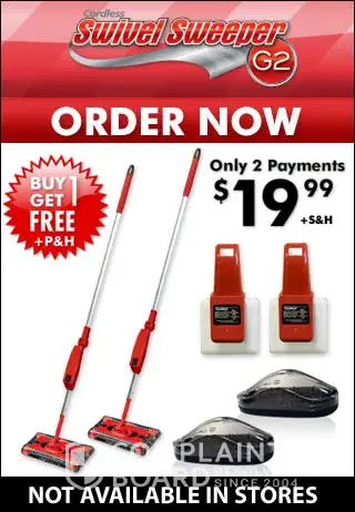My mom ordered the swivel sweeper (buy one, get one free for $19.95). When she received her order, she was taken aback by the charges and additional items listed on the invoice that she did not order, batteries, filters, gliders, etc. They charged her credit card $212. for merchandise shipped and an additional $98. shipping & handling for a box that weighed about 5lbs. The box had a total of 13 pcs shipped; when we questioned why the s/h was so high for a package that was shipped regular by the US postal service, the representive told us that it is the company's policy to charge shipping and handling on each of the individual items in that one package, mind you, she only received one package but was charged shipping and handling on every item in that package. That is absurd! Then the rep said she would be willing to take $10.00 off the order if that would make us feel better. Talk about adding fuel to a fire...how can company's get away with this crap? We didn't get a chance to actually try the item out because we couldn't get past the bill. We are returning everything.
