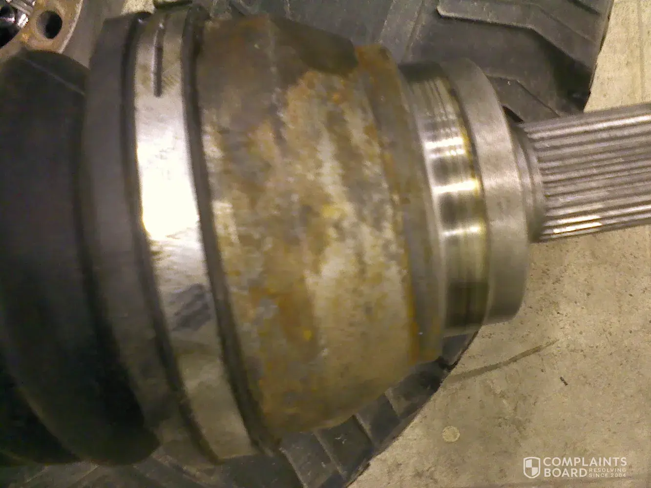 (Attached are photos of the rust covered axels and faulty CV Axel ball bearings which resulted in vibration, blown oil seal and $2000 worth of damage -- something a dealer would have known about before selling as having new parts)