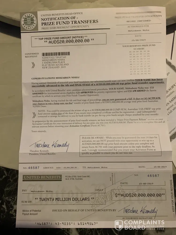 United Benefits lottery scam