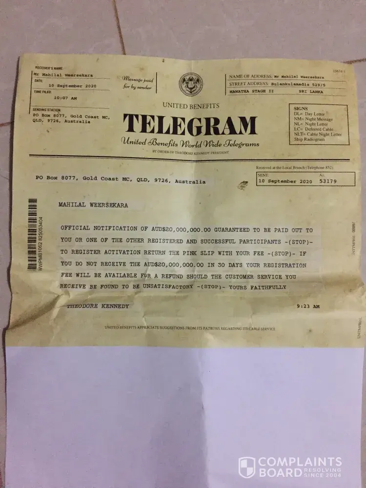 I’m in Canada and just received the Scam letter about United Benefits 21$ million prize.