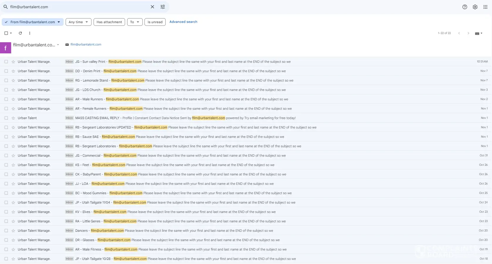 I was hesitant on hiring Urban Talent Management. They like to call themselves Urban Talent Agency but cannot legally put it on their marketing materials because their business practices matches more of a vanity publishing house (pay to be represented). Needless to say, I was desperate so I decided to give them a shot. I had a shoot that needed to be shot within 2 weeks and they at least could handle getting the auditions (by sending out an email to their talent).