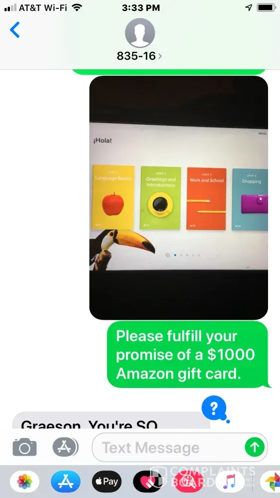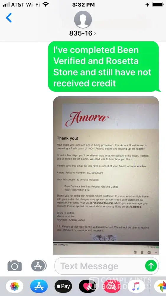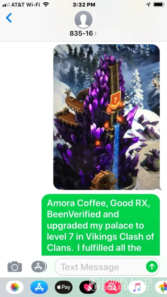 They keep texting me from a strange number 835-16 asking me to share it with 5 friends, trying to scam my friends and myself. I'm including pictures of the texts and offers I completed all for nothing. They need to be held accountable and fulfill their legal obligations. I ended up spending money for nothing. The companies that are being used need to do something to put an end to this scam.