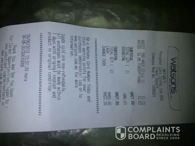 i can get her name..chinese old lady (aunty)..i feel this is ridiculous forcing a customer to buy a product..can watson refund me? can watson change the orange color container that i bought to loreal which i prefer? can watson do the exchange for me?