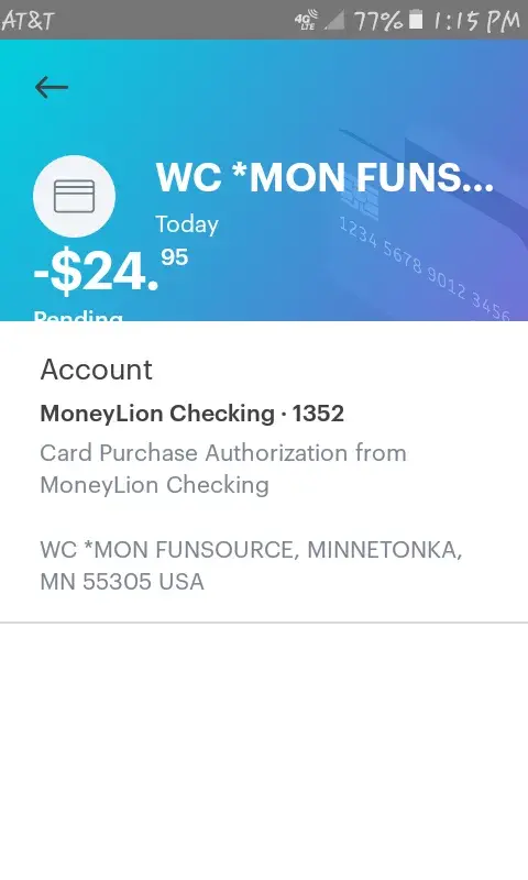 It started two months ago when I noticed it for the second time on My transactions. I knew I NEVER agreed to any monthly fees cause the money I leave on my card is for my bills and then it took my water bill off? Really.. hopefully I can get both $24.95 back cause i need it bad. It's happen to me twice and usually after I tell my bank I didn't know about that purchased they won't do nothing. So yeah my $50 back please.