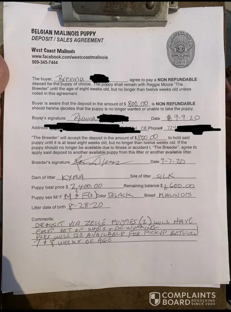 West Coast Malinois reviews and complaints