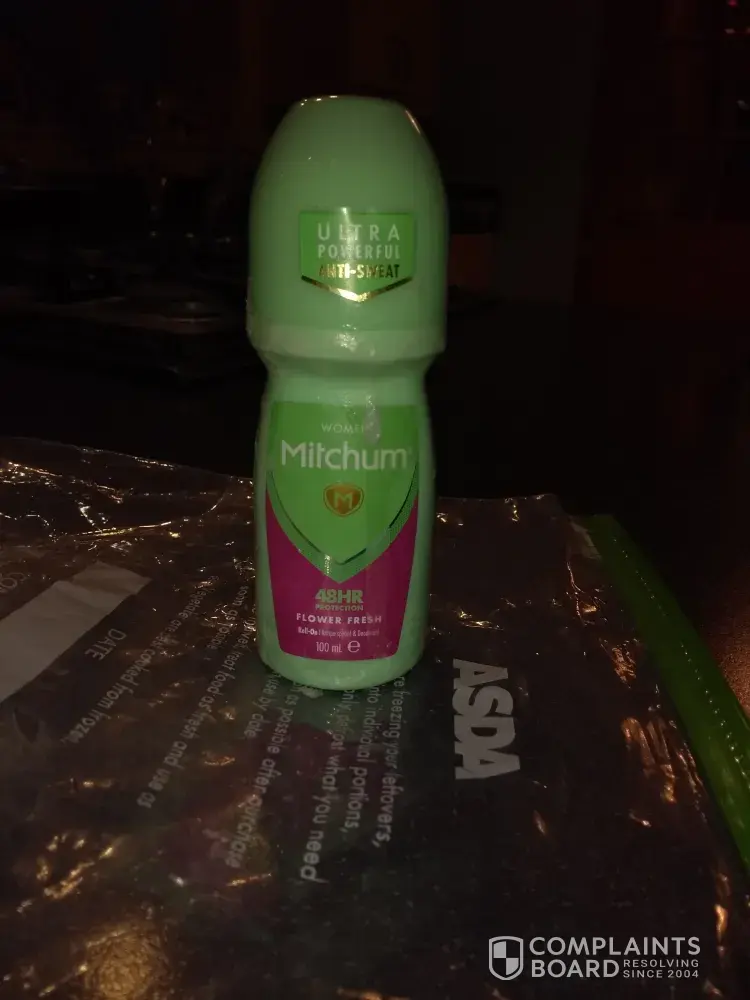 I have purchased the flower fresh roll on mitchum deodorant from asda spondon, when I went to use it I shook it lightly to coat the ball before using. When I opened the deodorant it exploded everywhere on my floor, bed, shelves and my clothes/me. When I looked inside the ball component was missing and is unusable. The deodorant liquid had stained my carpet and i'm now without the money or a deodorant to use. I have told the asda store and they have told me to complain to the manufacturer.