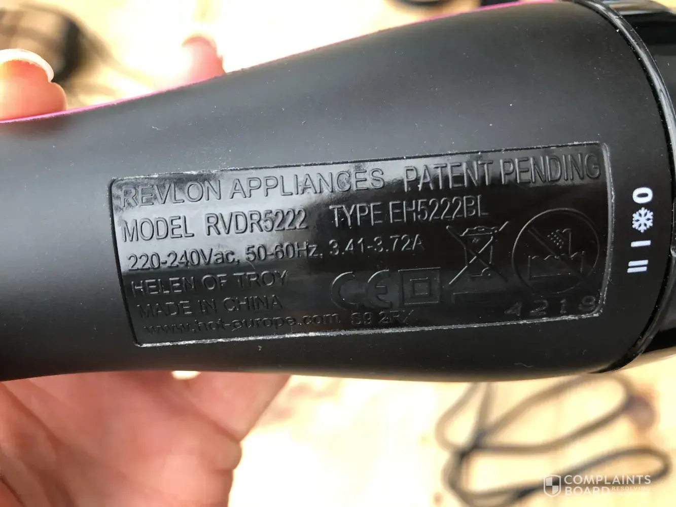 After drying my hair on Sunday morning with my GHD hair dryer, I set my Revlon device to cool, and had been styling my hair for less than 30 second when I detected the distinct and acrid smell of burning plastic. As soon as I had moved the tool away from my face, I spotted FLAMES erupting from the base of the handle. So as to not set my room alight, I raced downstairs; by the time I got to the backdoor, it was so hot to the touch that I threw it out into the garden.