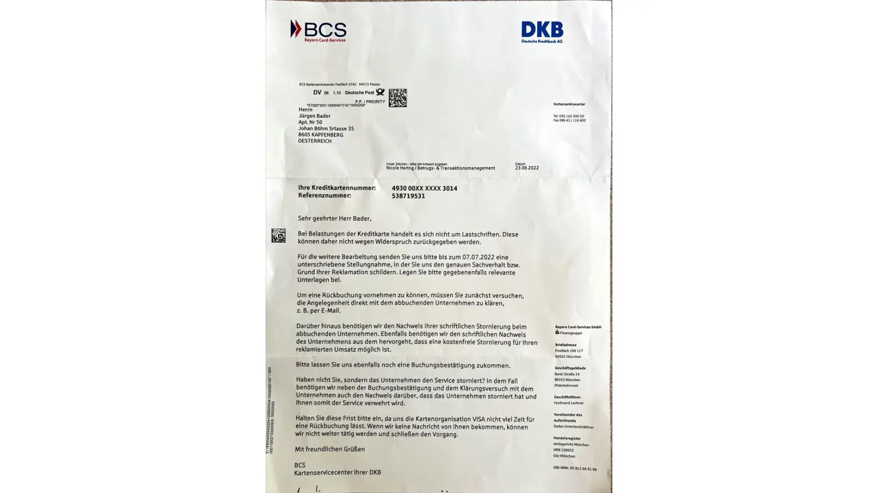 3 Juni 2022 habe ich versucht mein gute Freuendes Revolut Account von meinen DKB Kreditkarte aufzuladen, das hat schon früher wunderbar funktioniert, aber dieses Mal es war etwas größere Summe - 3000Euro, wahrscheinlich deswegen