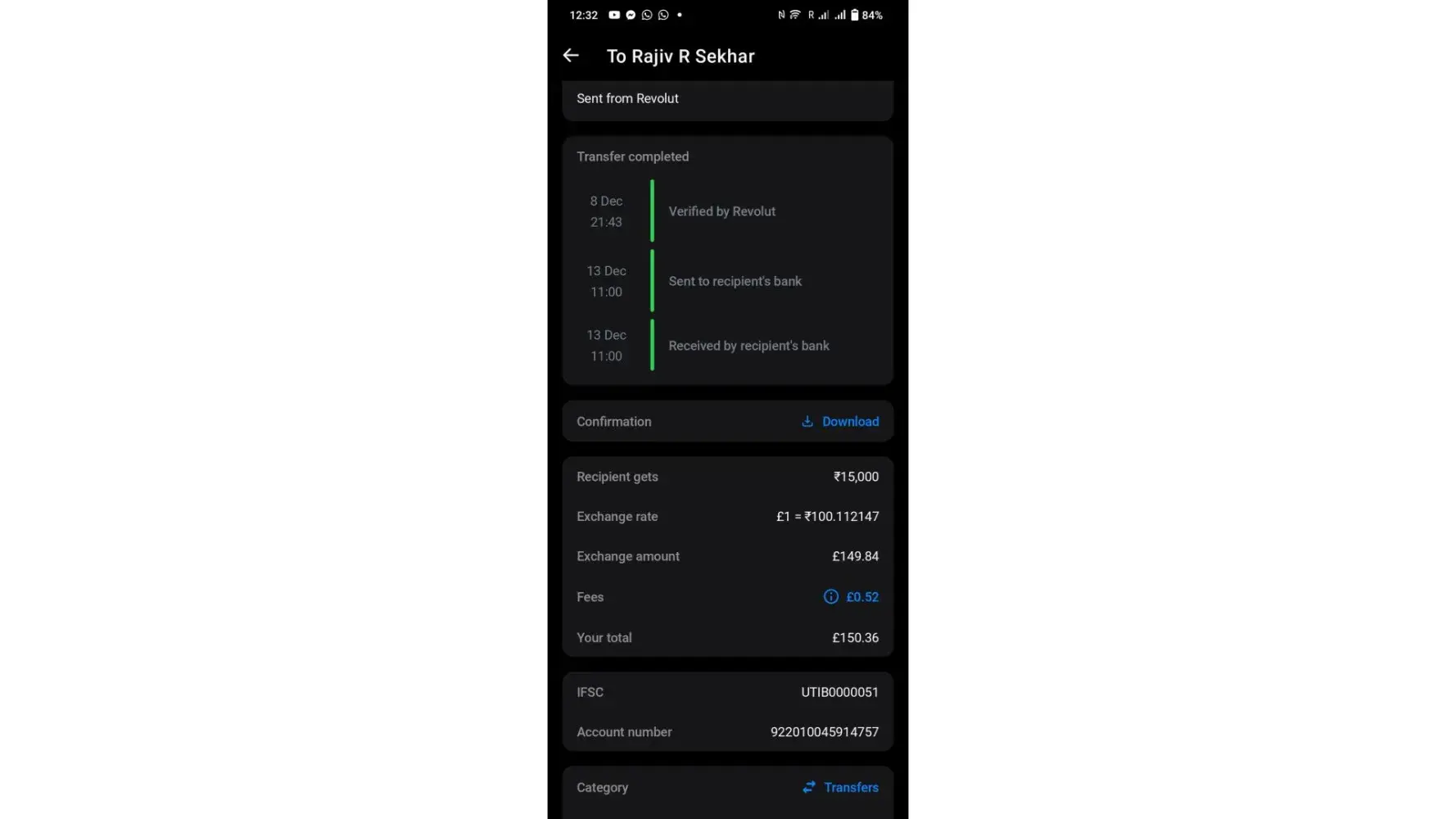 I tried to transfer money (INR 15,000) GBP: 150.36 including fees, to India on 08/12/2022, 21:43 Hrs. But unfortunately until now the payment didn't credited to the beneficiary account number (Beneficiary Name: Rajiv R Sekhar, Bank Name: Axis Bank, Acc. No: [protected], IFSC Code: UTIB0000051) I am really disappointed about this incident. Actually I transferred the amount due to a hospital emergency for my parents. I tried everyday talked with your customer services through online chats, but until now my problem didn't solved. Last 2 days back, on 13/12/2022, I found in the application that the amount transferred to beneficiary account, but until now, its not reflected in the same, I will attach hereby the screen shots of my chats & transfer details here.