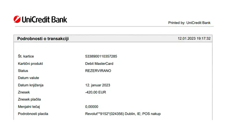 My master card was scamed. I have blocked the card and filed a report to the police. The payment is still in reservation, but can not be blocked from Unicredit bank, Slovenia.