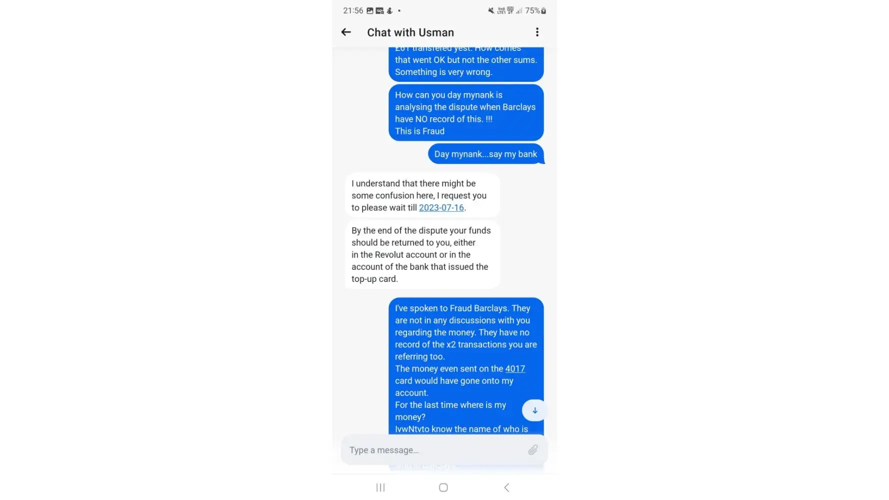 Your chat say they are in conversation with Barclays to sort out the transfers. I have spoken with Barclays. They have no record. They have not been contacted by Revolut about this.