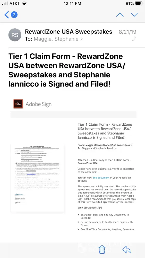 Reward Zone USA samsung galaxy phone a1000$paypal card a1000$walmart card an apple I phone and a bunch more that I should have already had in my hands