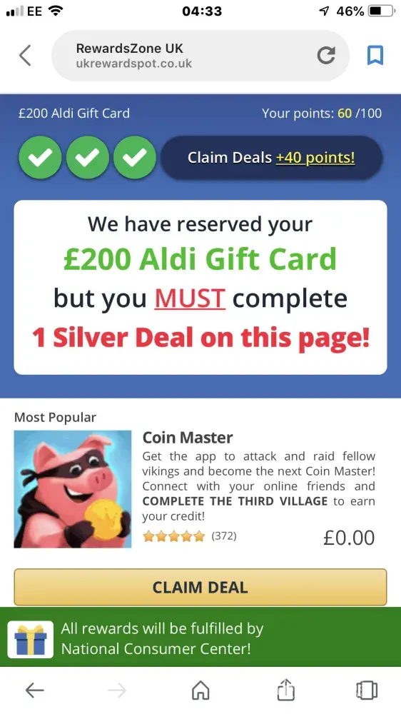 completing offers for reward