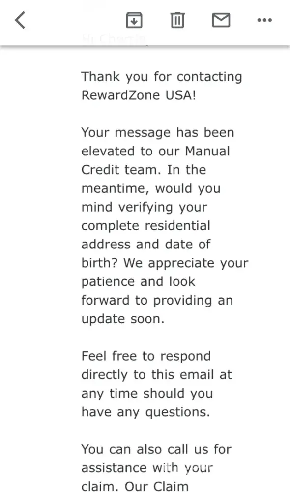 I did everything that was asked of me and getting 20 phone calls a day about insurance I did that one and I did the game stay down here for two hours playing a game to finish the points and I went to the third level like it was told and I just want to make sure that I didn't sit here for since 8 o'clock this morning and is now 12 o'clock Doing everything that was asked and still not receive it just wanna make sure this is not a scam please contact me [protected]@gmail.com