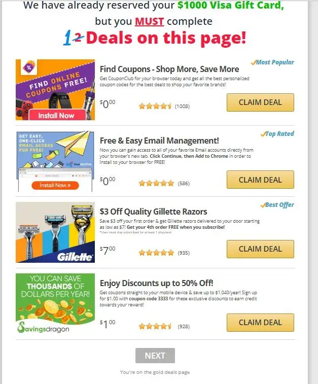 Hello i completed all of the tasks/deals that were for a $1000 paypal card, and once i completed the last 'silver' deal, it didnt load any page afterwards to claim the paypal card. i then went back and completed the silver deal THREE more times, and actually made purchases on two of those in order to complete them, and then.. nothing, and no response to my issue even after multiple emails and messages through your site.