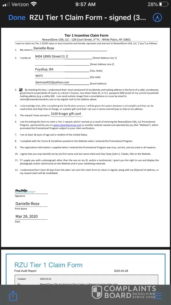 Reward Zone USA Complaints Page 5 of 29
