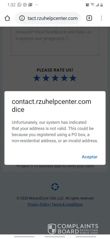 Completé todos los incentivos para esta recompensa. Intenté repetidamente contactar a la compañía, sin respuestas, en absoluto. Ahora tengo todas estas suscripciones a productos que realmente no necesito. No sé si cancelarlos de inmediato o esperar, con suerte, una respuesta de recompensazoneusa. No estoy segura de si esto es una estafa o no.pero ocupo una respuesta