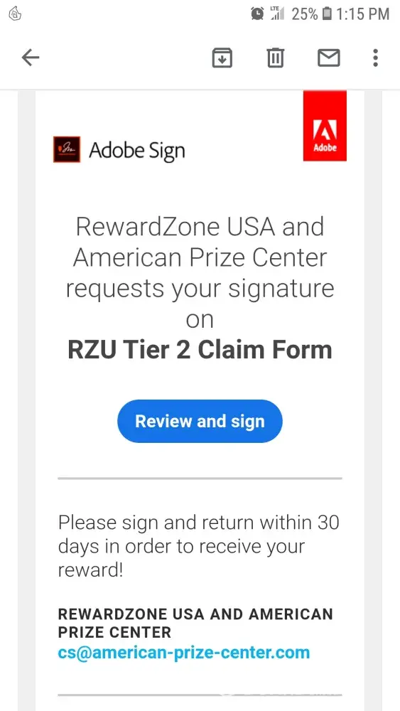 I have completed multiple things with these people. For 100$ amazon gift card and a 50$ Visa card. Well when I got to claim my amazon reward during the claim process it booted me off and when I went back it was like I never won it at all then all of a sudden I automatically won a 50$ Visa card claimed it and signed the form 30 days ago Also telling me I couldn't claim another reward for a whole year. I've sent multiple emails no reply back. I'm going to take legal action and I'll get justice