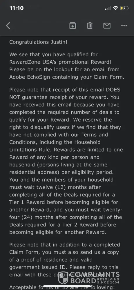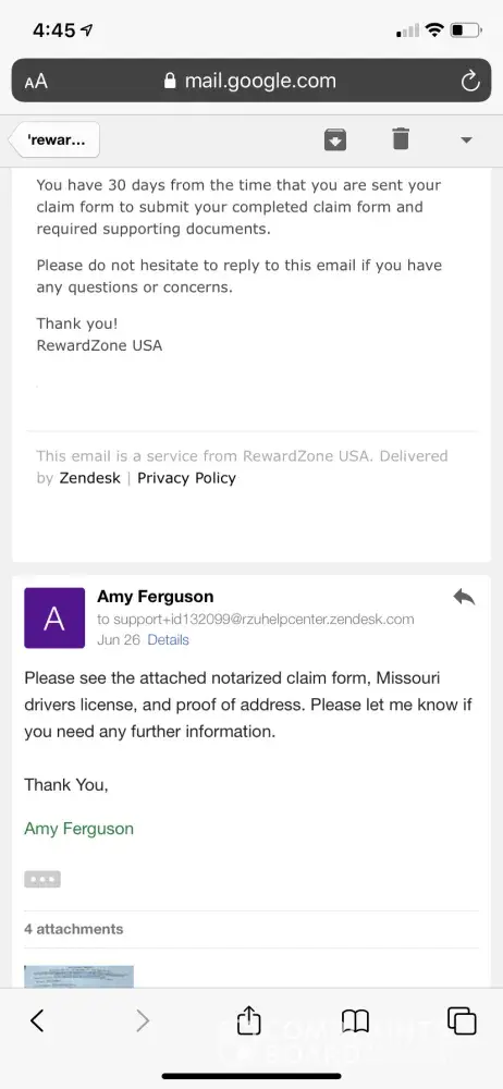 I completed all required partner offers and received notification from Reward Zone of that on 6/25/20. I submitted the notarized claim form, ID and proof of address on June 26th. I have not heard back at all. I've checked status several times and have also resent claim form requirements 3 times. I have asked for updates continually. I have also been billed for the fee based partner offers.