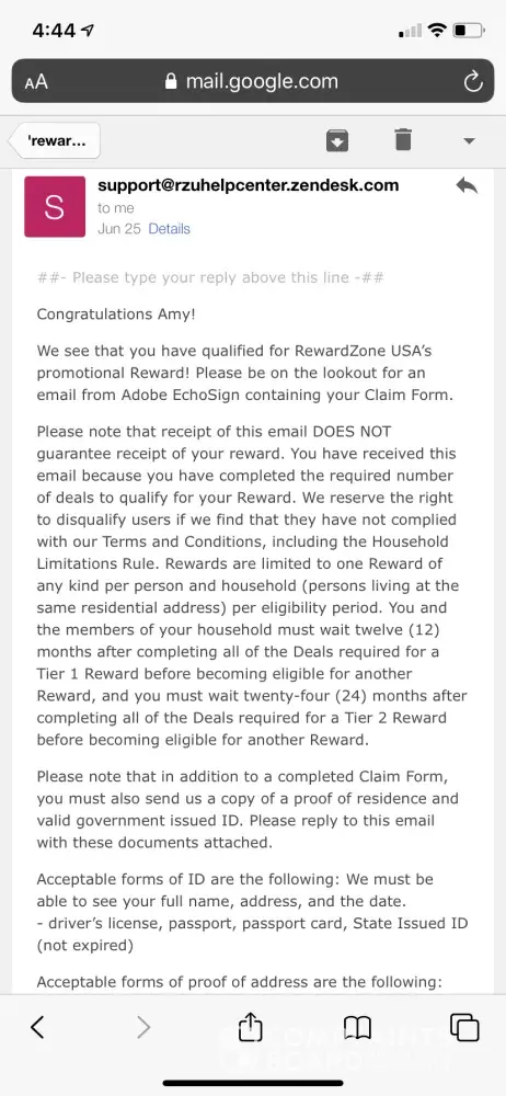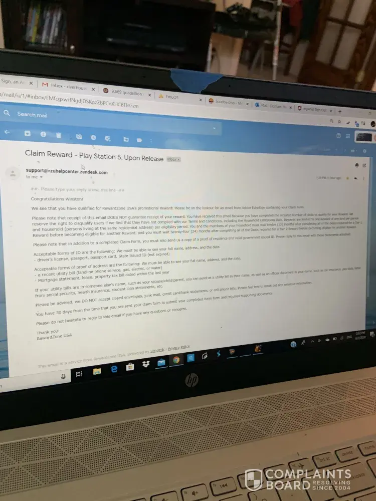I did subscribed to so many different things spending money that I don't really have and I have sent in all my documents they asked for and have emailed them repeatedly with no response and then Monday I got an email saying I only had 15 days to send in my proof of documents or I lose the reward which I replied I had already done that 20 times and still sent it all again and again no response it's not right to have me spend 64 dollars a month on coffee I won't drink and 20 dollars for CBS all access and I don't even know what that is but I pay all you hoping that RewardZone is not a scam
