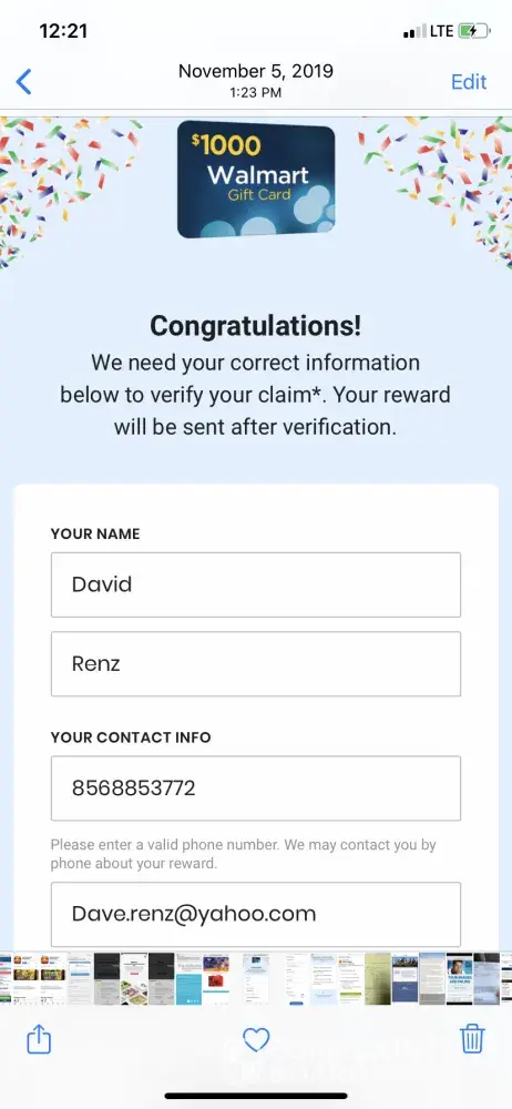 It popped up on my phone saying I had won a 1000dollar reward card for Amazon through Walmart if I took a survey, I did. Then they wanted more and more info and more surveys. Just don't understand. Then they said I have to get some kind of silver, gold and platinum thing. I didn't know what they were talking about. I'm not going to buy things because people want money to receive a prize you've already won. What should I do. I didn't give them bank info, but they have my phone number and email. What should I do?