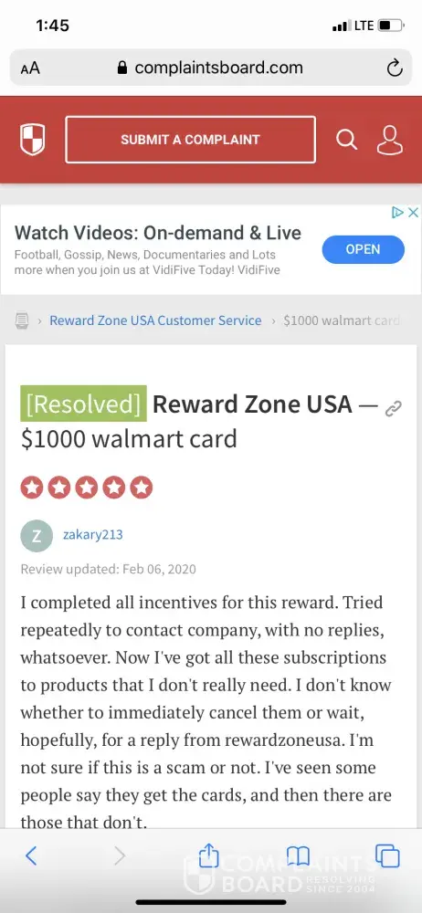 Reward Zone USA Complaints Page 8 of 29