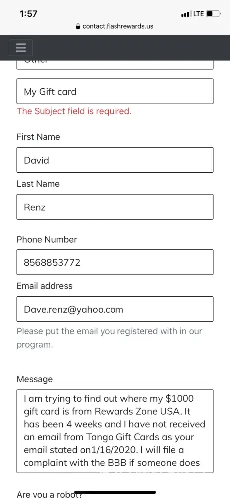 Thanks to this website and this website alone this complaint is resolved. I have received the gift card and used it . It is real money everyone. Convenient how after each of the 3 complaints I posted on here, I actually got a response from them...