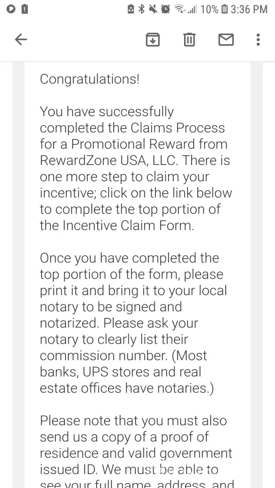I received my claim form for my gift card... Sent it back along with my i'd and proof of address. When I go to the website to check my reward status it says "no incentive found". I have emailed numerous times and only get automated responses. No one has yet to email me why my account is showing nothing.. The offers I completed cost me money. This is a complete scam