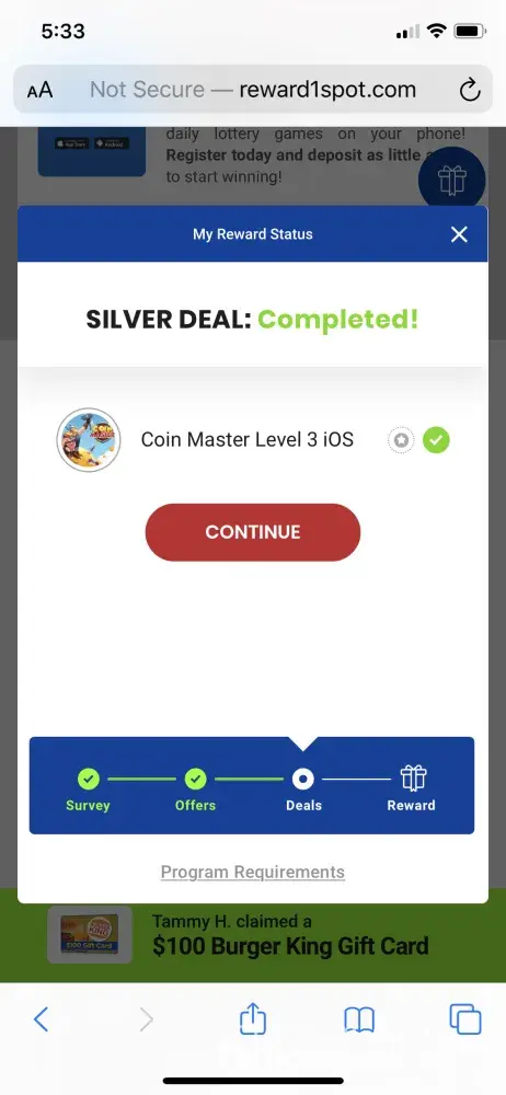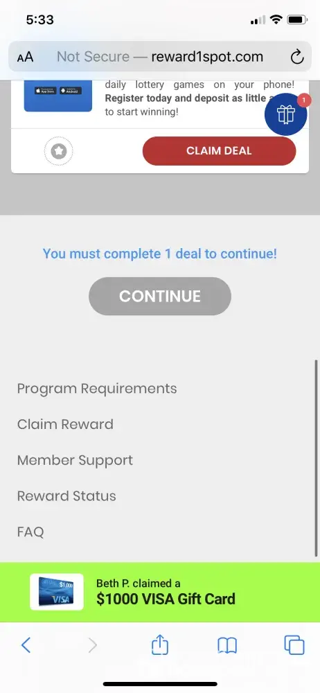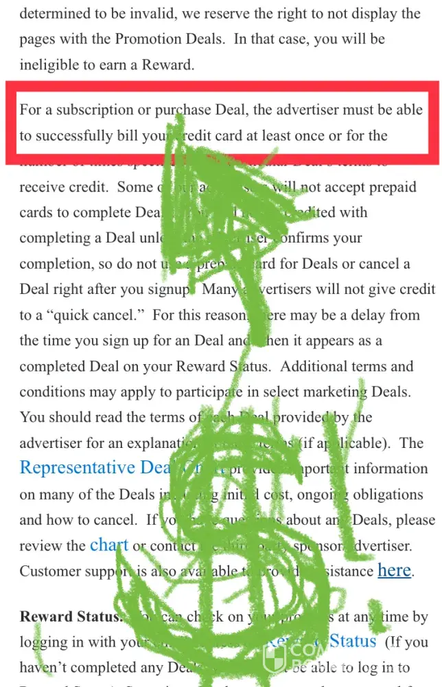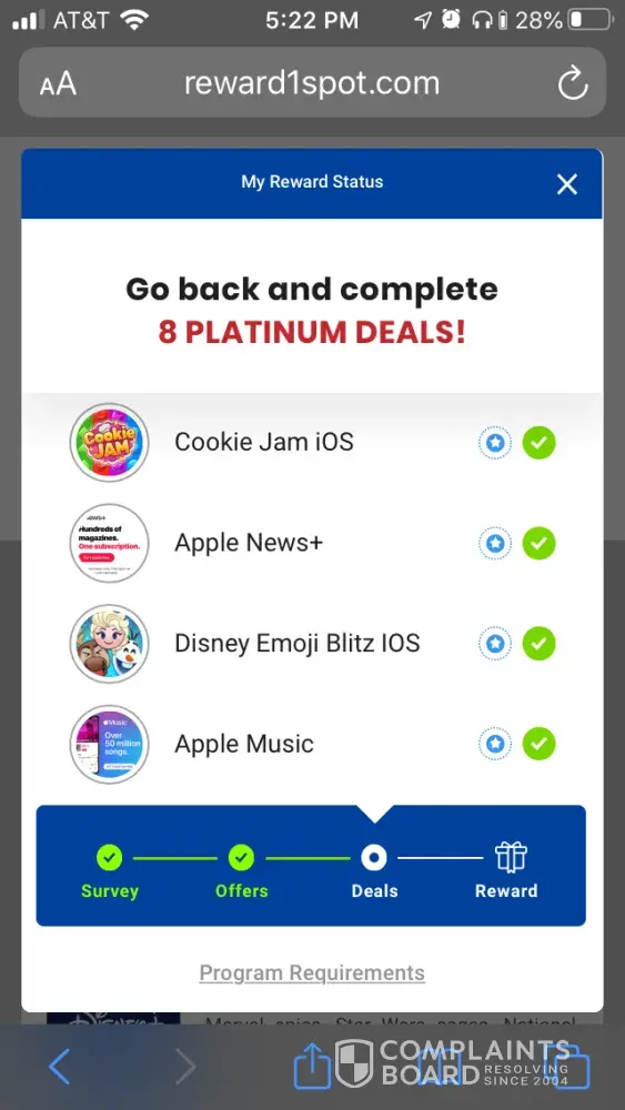 I filled out the survey completed the deal requirements and i keep clicking the present icon and it says that i havent completed the requirement. I feel like this was false advertising after providing all the information required. The information required was personal credit card information. I took a risk by doing this annd i feel like i was scammed.