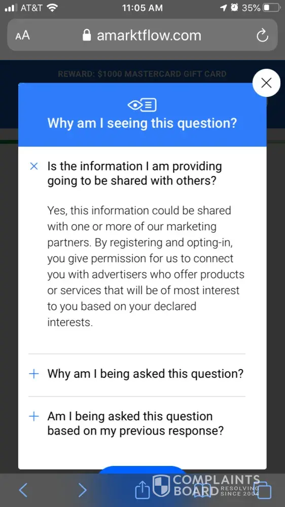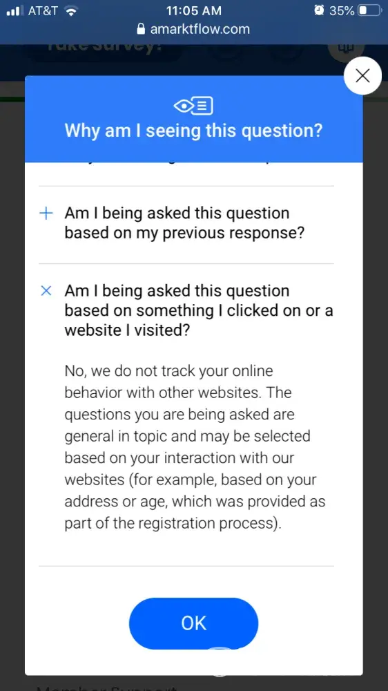 350 ch's are not nearly enough to provide the info accurately but: you're interrupted by a pop up sayin"ur a winner of a free..." or "ty for ur loyalty, here's a free..., only nada is"free". If ur actually able to complete the survey w/all the redirects done, u then have to agree to aprox 2-15 (!) offers that all cost money! Its illegal +its fraud!
