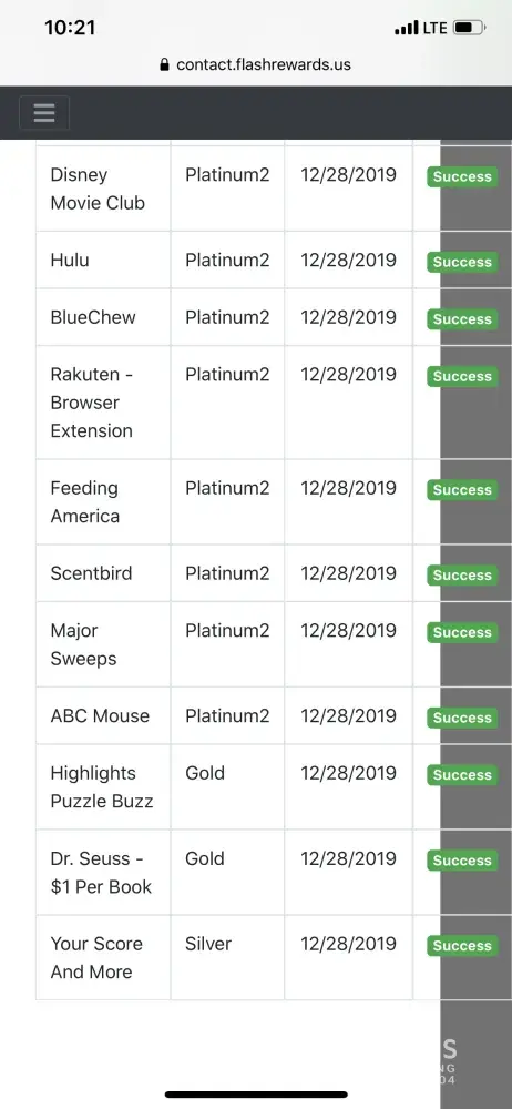 I got a notice on google that I was [insert billionth number] google search and that I could win a $1000 gift card. I said what the heck, why not? I completed the surveys and it completed 10 offers, 1 silver, 1 gold, and 8 platinum. I even have photos of the 8 platinums I did. I still have free trial running right now. And yet I cannot move forward with the reward. I have checked the list for the offers I have completed and yet NONE of the offers are appearing. I have contacted customer server twice now and so far they are not helpful. It has been way more than 5 days and they said they have no record of any completed offers under my email. I even started a Disney+ account that was supposed to be a 7 day free trial that I was charged for! I didn't realize it until a few days after I got charged. I first started the reward program on 2nd or 3rd and finished it the next week. So I was within the 20 day period they lined out. I would like to receive my gift card, but if anything I would at least like a refund for that Disney+ charge.
