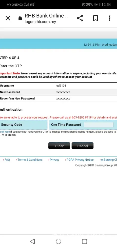 I try to reset my password on your RHB Now website but ask me to call customer service.