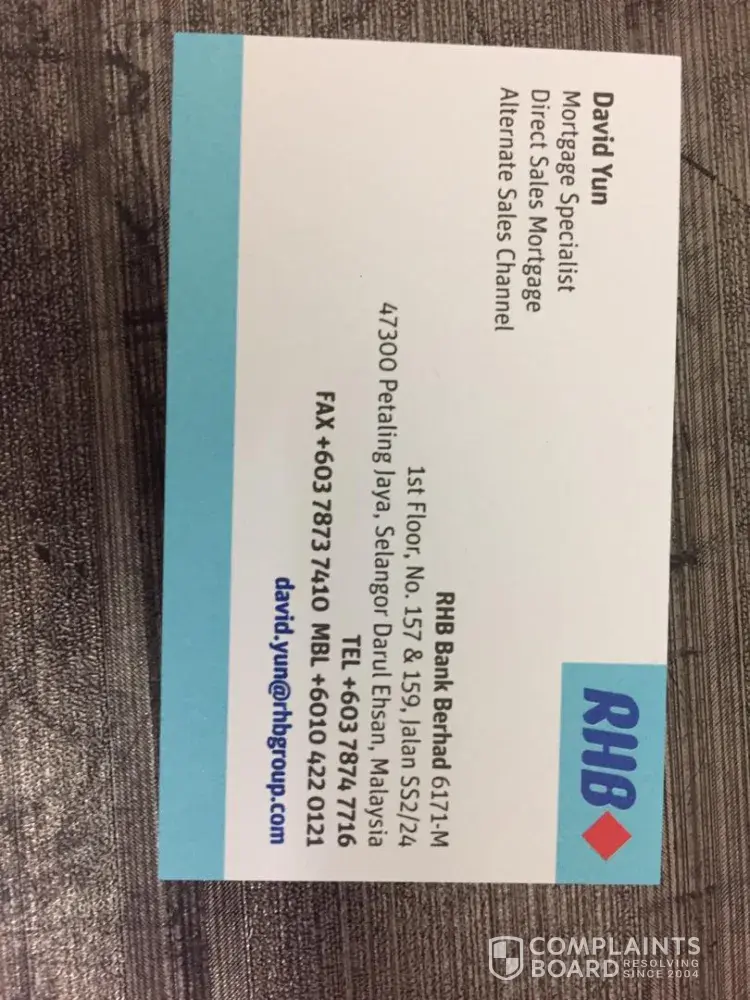 Im jason lim a real estate negotiator and give bad service and blame ren from ask rhb referral scheme why he didn't inform early that we ren suppose got referral but he didn't inform.. I feel so shame that rhb got this kind of banker blaming that his commission and salary from rhb are so low. He is try to convince ren not to take the referral and I strongly suspect that he is asking some others to claim the referral fee. Between, he is insist client must get the loan agreement from his recommended solicitor. My purchaser are those type of client that very careful and calculative. To save my buyer from cancel the deal because of david yun bad attitude then I decided to ask buyer to take others bank loan.