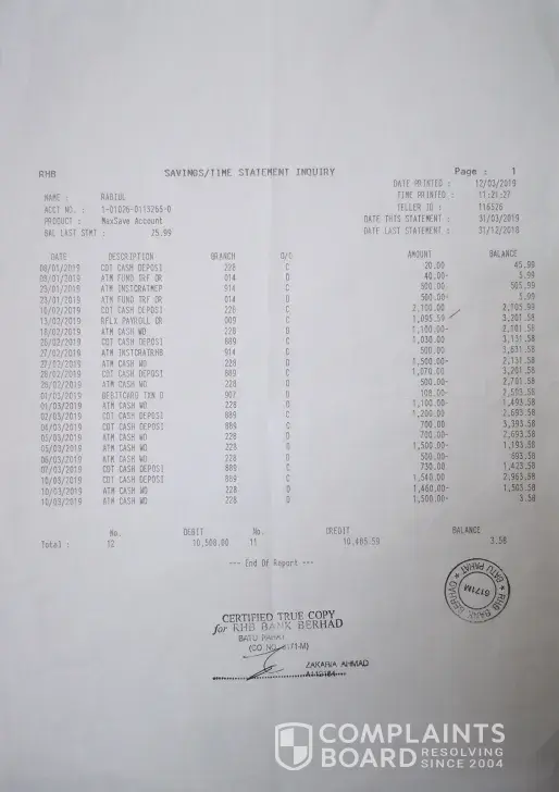 Mohon tindakan dr RHB centre dan jawapan dr director RHB bank.. Kecewa.