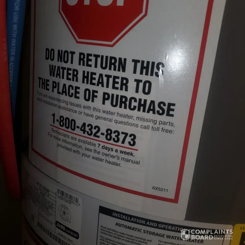 Rheem should provide a refund as this is an emergency and I cannot go without hot water and now must go purchase a new water heater.