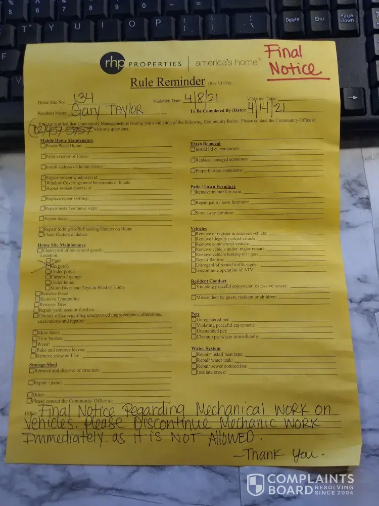 Since pandemic began rhp has left property owners and tenants without most amenities and operate like a third world country... Specifics toooo looonnnnggggg to mention... Simply suck!!! Entrance gates never operable!! No address or name on property from accident and knocked down... Hot tub and sauna not operable... Garbage strewn thruout park... Trash...