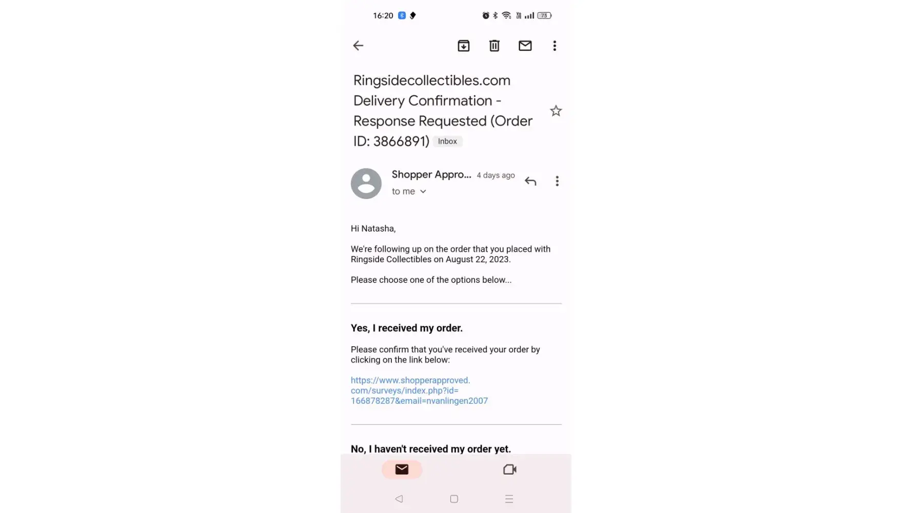 I ordered 3 figures from Ringside Collectibles on 12/13/2022. But, uh-oh, turns out one of the items I ordered was on backorder. This meant that my daughters' other three items would be late. So, I shot them an email on 12/13/2022 and 12/14/2022, hoping for a response. But guess what? I never heard back from them. Talk about bad customer service, right?