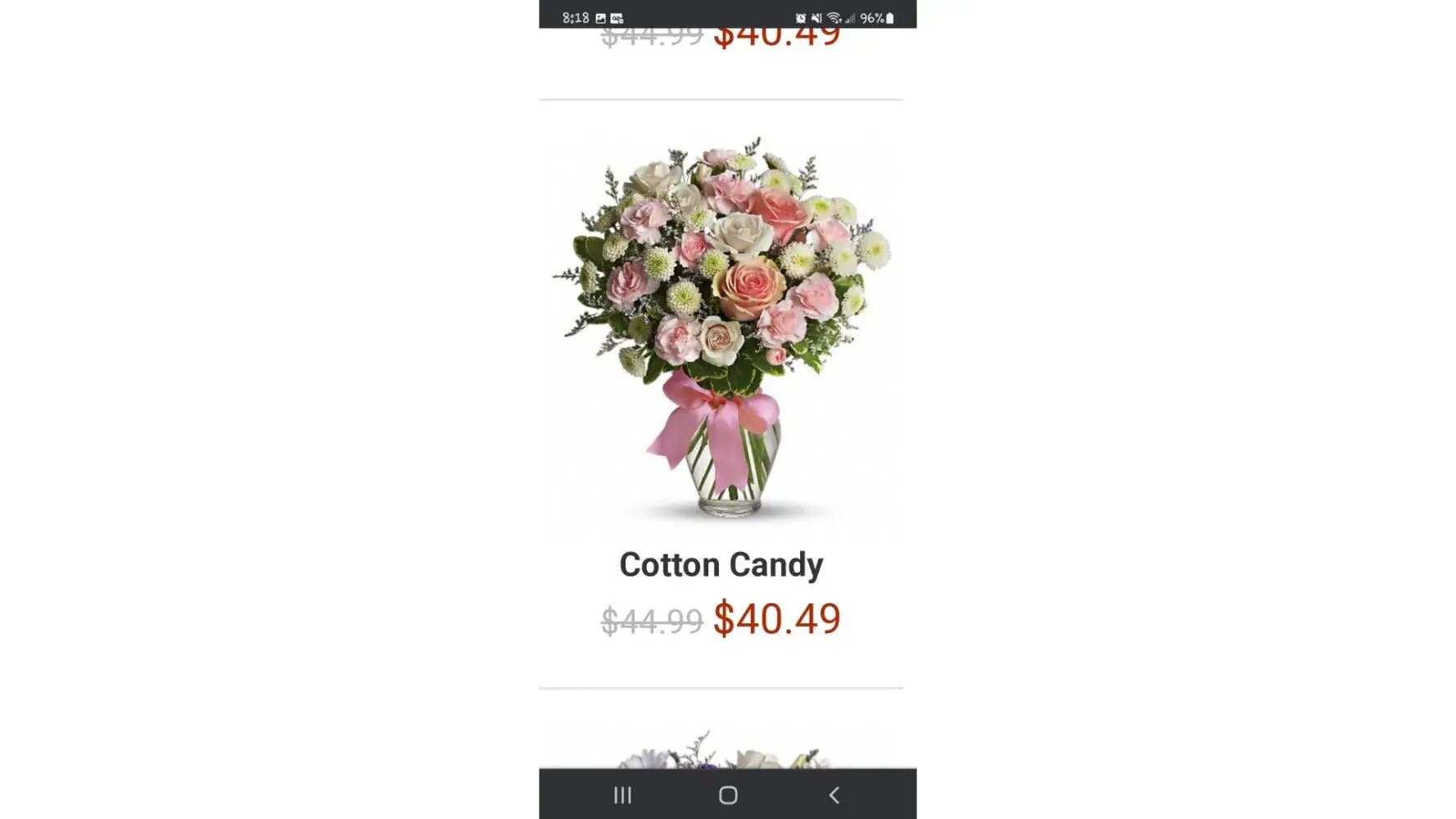 Placed order for same day delivery 11/18/22 which was honored. The product however, was NOT. I ordered the "Cotton Candy" flower arrangement with a card. The product that was delivered was maybe a third of the flowers that are shown in the picture on the company website. I paid $98.64 CND. An email has been sent to the company and no reply received