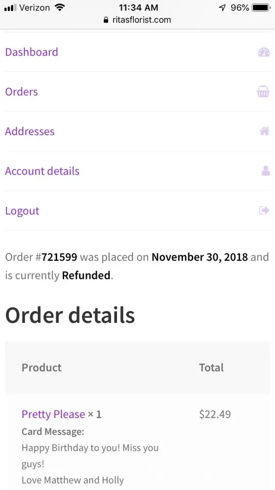 I ordered flowers from Ritas Florist, who confirmed my order. I provided multiple contact details (email, two phone numbers, etc..) and explicit instructions.