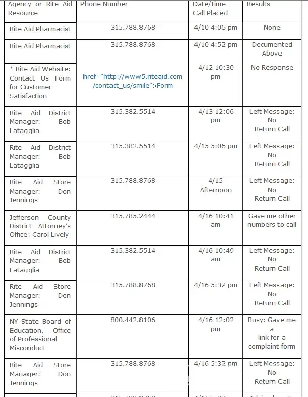 drugmonkeyrph@gmail.com This is David Stanley Monroe a parmacist with Rite-Aid. Email him your complaint as he has corporate's ear.