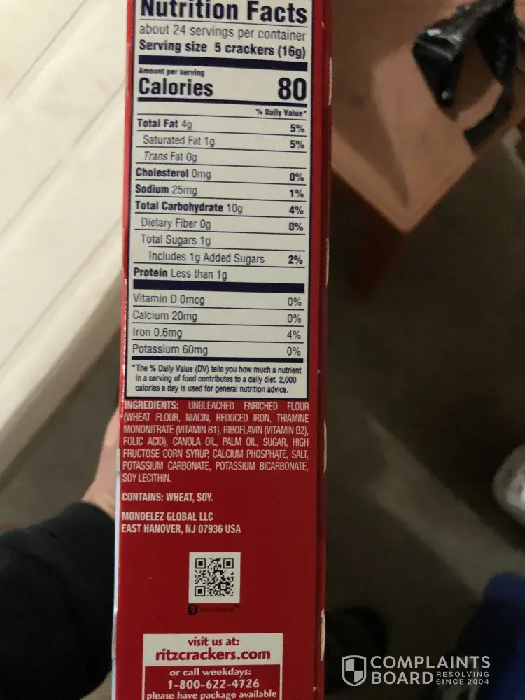 Check for Palm Oil. All the Ritz Products are using it now. I grew up on Ritz peanut butter crackers, but now I can't give it to my kids because of the Palm Oil warnings all over the net. I can't eat them, I'm immune compromised. The taste is different now too.