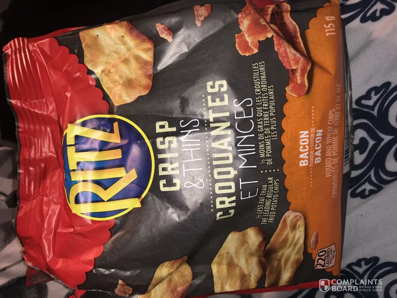 I have purchased a bag of bacon flavoured ritz crisp & thins with no flavoring and an awful taste (13 oct20 AX3 09B7) just tastes plain. I was very disappointed with the product I purchased. I buy this in a alternative to getting regular chips for healthy option. In the past when I have bought them in other flavours they have been full of flavor. Thanks :)