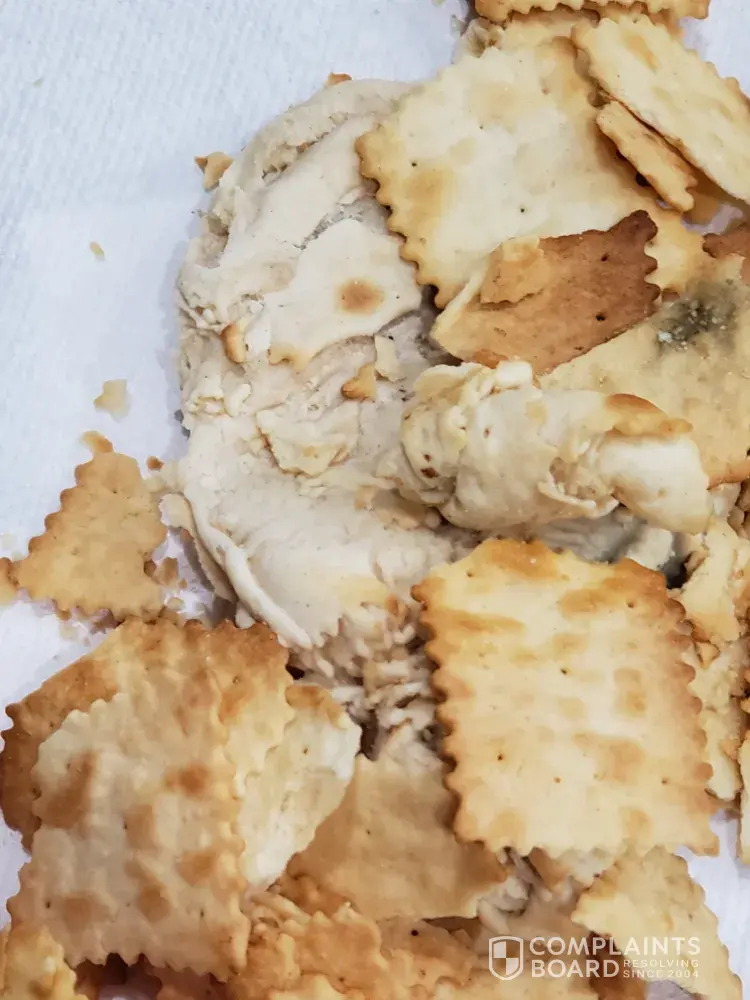 Attached is a copy of what was left of crackers are. Some would break a small part off, but to small to eat.